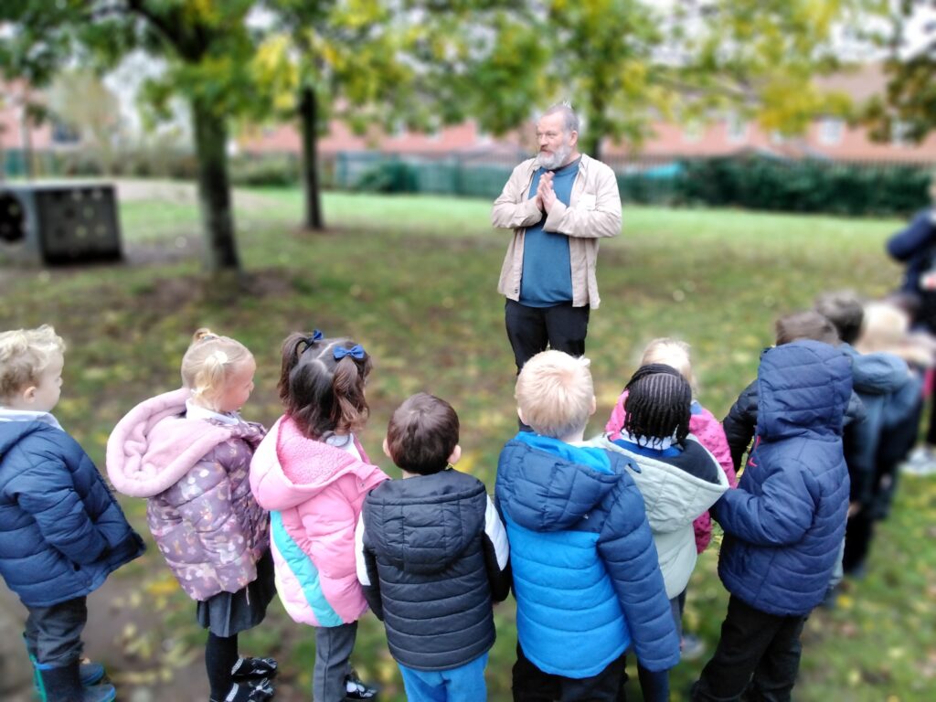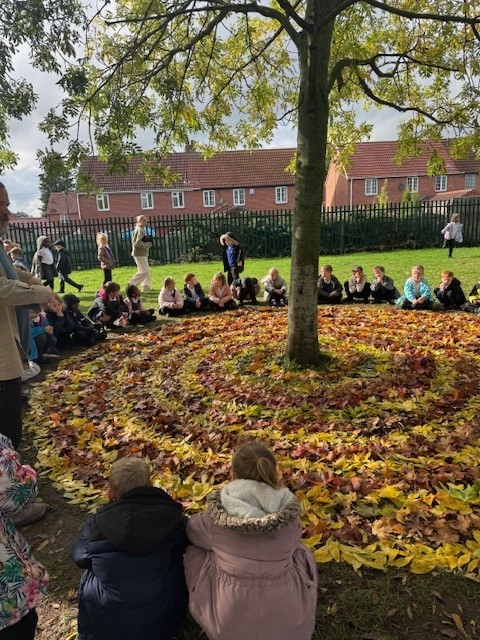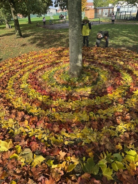 Thank you to James Brunt for coming into school and creating this amazing outdoor art with us. All year groups, 2 year olds included, had to forage for all the different coloured leaves, twigs and seeds to create this amazing swirl of beautiful autumnal art.