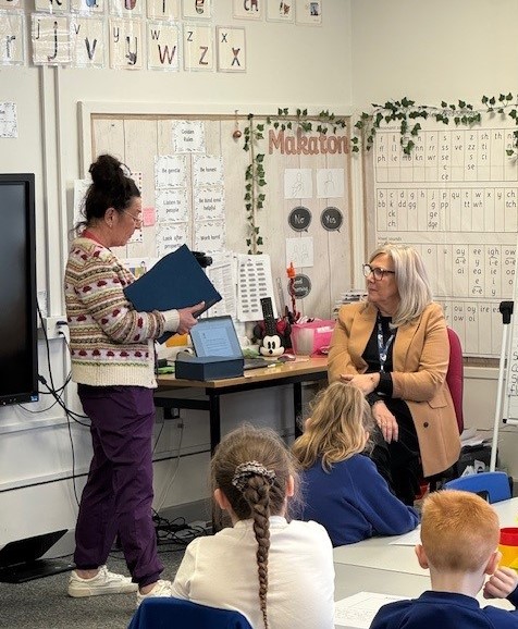 What a surprise Mrs Shaw had when she was presented with a Kindness award by the Parish Council after Fiona’s flowers nominated her. The children in Tigers class also did a piece of writing about what they think Mrs Shaw does that shows kindness and were quick to give her celebratory hugs when she received the trophy and the album of previous recipients.